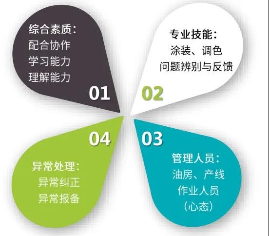 管理人員需要能夠落實管理職責、能組織對操作人員進行涂料或涂裝知識的培訓或實操技能的訓練,能監管自己轄區內的設備、環境、人員穩定作業。