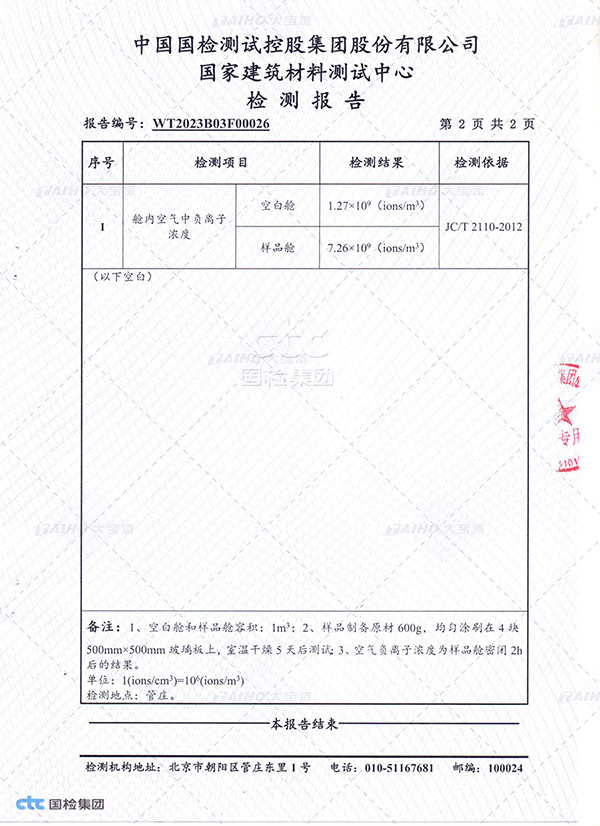 高樂伯負離子凈化墻面漆經權威機構檢測產品中負離子含量達7200(ions/m3)以上,同時并通過歐陸IAC-Gold檢測標準、法國室內空氣排放最高A+標準及中國環境標志認證。