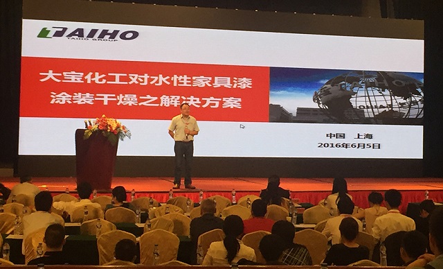 2016年6月5日—世界環境日,為涂料行業熱切關注的,由中國涂料工業協會主辦,中國水性木器涂料產業聯盟、《中國涂料》雜志、北京涂博展覽公司聯合承辦的以“打造美麗中國,從水性環保開始”為主題的第十屆中國國際水性木器漆涂料發展研討會在上海隆重召開。會議邀請了環保部、中國石化聯合會、家具協會、涂料協會等領導參與、涂料行業上下游企業代表約500人參加。大寶化工陳春華總經理、培訓學院黃文敏校長受邀出席了本次大會,黃校長在會上做了《大寶化工于水性家具涂料涂裝干燥之解決方案》專題報告,受到大會一致好評。