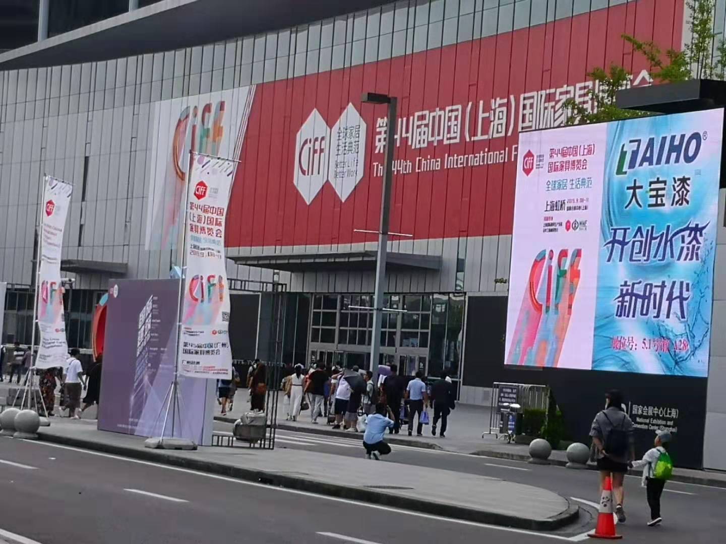 上海家博會做為國內家具展的盛會,大寶漆在現場除了展位展示外,還不惜投入重金,在會展中心的進展大廳及全展場范圍內的38片LED屏幕上投入廣告,讓大寶漆的參展主題“開創水漆新時代”出現在更多家具廠客戶的視線里,充分展現出大寶漆在家具漆行業的領先地位。