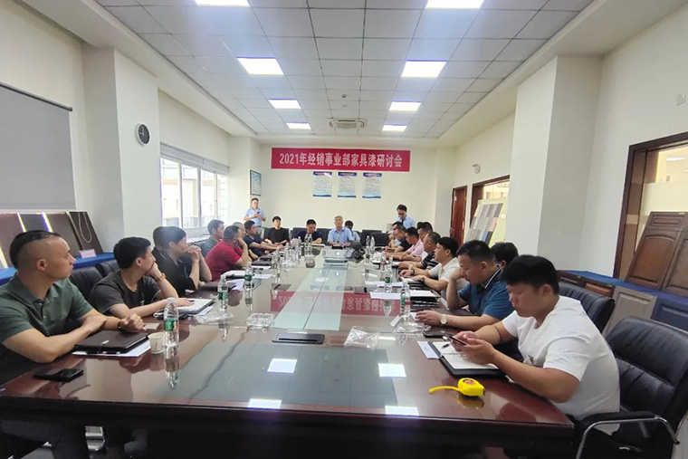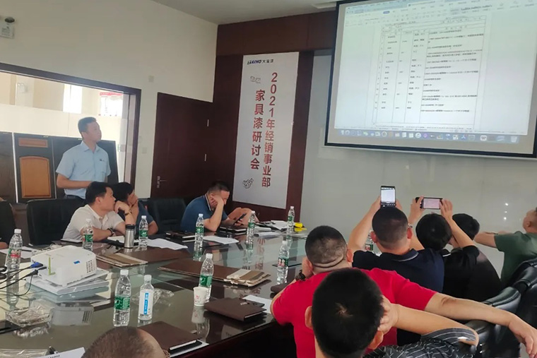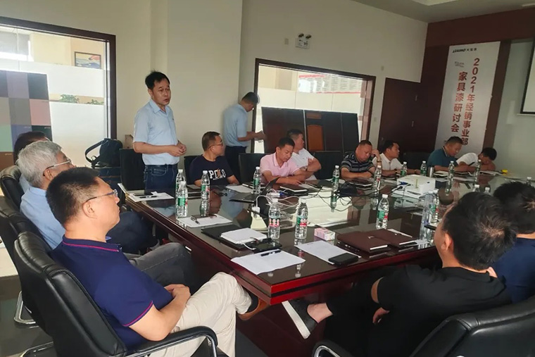 而后,經(jīng)銷(xiāo)事業(yè)部家具漆執(zhí)行經(jīng)理劉國(guó)勇帶來(lái)了以“破局 共生”為主題的工作報(bào)告。劉執(zhí)行經(jīng)理首先對(duì)家具行業(yè)從國(guó)際環(huán)境到國(guó)內(nèi)環(huán)境到市場(chǎng)環(huán)境現(xiàn)狀進(jìn)行了深入的分析,從公司在國(guó)內(nèi)市場(chǎng)布局、2021年上半年業(yè)績(jī)達(dá)成情況分析、客戶定位、產(chǎn)品品項(xiàng)突破、特色化產(chǎn)品、市場(chǎng)流通型產(chǎn)品、服務(wù)支持等方面進(jìn)行了全面的講解,通過(guò)“破局 共生”兩部分希望公司與經(jīng)銷(xiāo)商一起并肩作戰(zhàn),共迎困難。