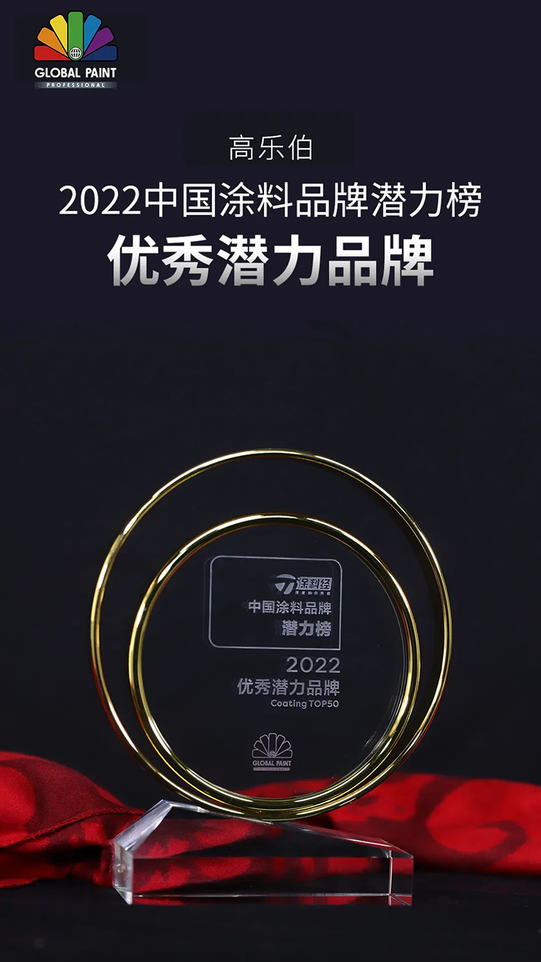歷經(jīng)層層評審,高樂伯憑借著過硬的品牌實力和優(yōu)秀的產(chǎn)品質(zhì)量,從眾多涂料品牌中脫穎而出,被評為“2022優(yōu)秀潛力品牌”!
