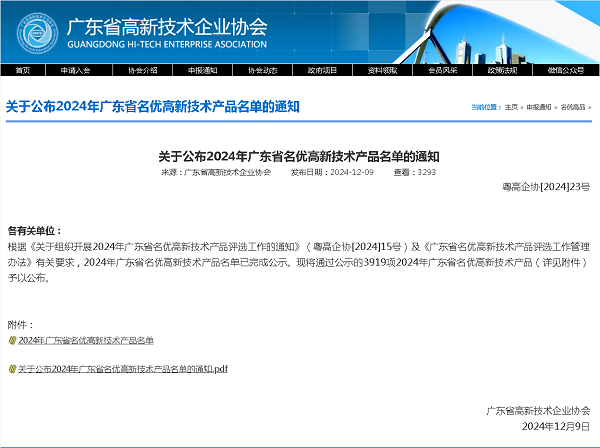 實力見證|榮登2024年廣東省名優高新技術產品榜單