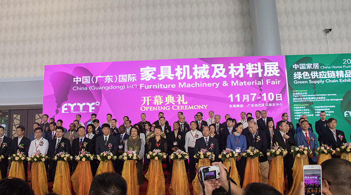 11月7日,第三屆中國(廣東)國際家具機械及材料展在東莞厚街廣東現代國際展覽中心開幕。東莞市商務局、東莞厚街鎮政府、中國家具協會、中國涂料工業協會、中國林產工業協會、廣東省家具協會等領導嘉賓及多家駐廣州總領事館官員,東盟家具理事會成員出席開幕典禮。據悉,本屆展會規模6萬平方米,600家業界頂尖一流家具機械、材料企業同臺比武切磋。預計將吸引超過4萬名觀眾到場參觀。