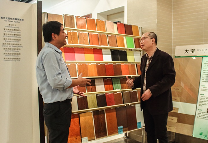 業務一部葉小兵副理向溫部長一行人介紹了大寶漆的發展歷程、科技創新成果和市場發展優勢。大寶化工作為國家高新技術企業,長期專注于綠色環保涂料的的研發、生產、銷售與服務。歷經20多年的艱苦創業和誠信經營,大寶漆已發展成為行業內龍頭企業。大寶漆堅定秉承“減少浪費地球資源、重視環境保護功能、創造健康彩色人生”發展理念,胸懷“百年百強企業 ”愿景,持續強化產品技術創新和品牌建設力度。