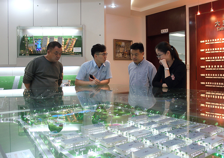 到訪領(lǐng)導(dǎo)一行還參觀了東莞大寶化工現(xiàn)代化的廠房設(shè)備、智能化涂裝線、一流的中央實驗室和展示家具漆產(chǎn)品完美施工效果的色板中心等地,增進了彼此的了解和進一步合作的信心。針對“油改水”問題,工作人員向參訪人員介紹了大寶漆水性漆的工藝和質(zhì)量控制情況,詳細(xì)回答了馬總、李總一行對智能涂裝線的提問。考察人員對大寶漆先進的生產(chǎn)管理和環(huán)保理念給予了高度評價。