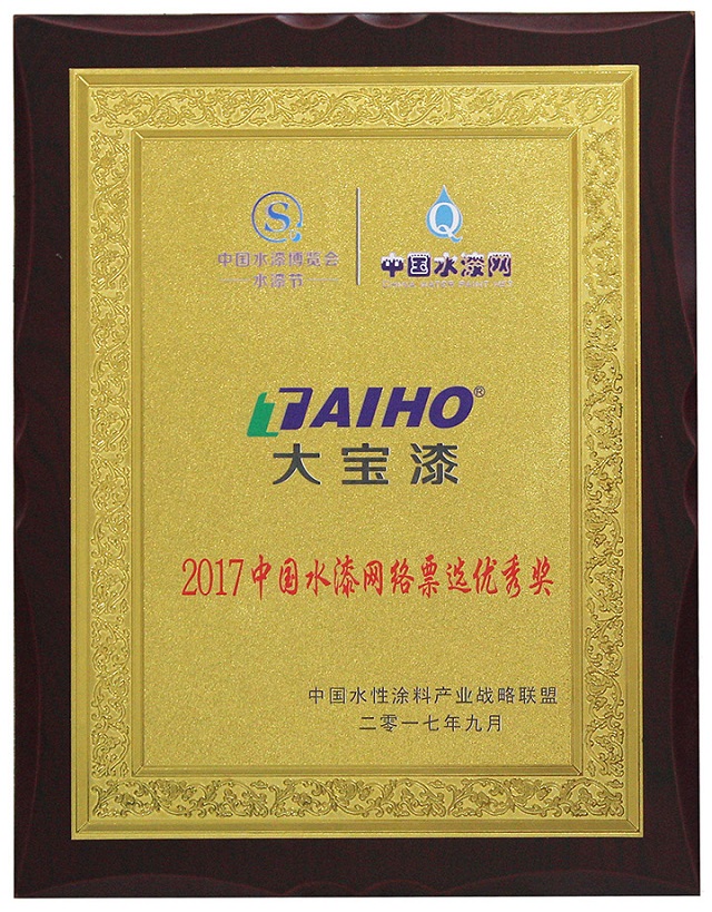 此次大寶漆在水博會中獲得了“2017中國水漆網絡票選優選獎”,這是消費者對大寶水性漆及倡導的環保涂裝方案的充分肯定,同時也是對大寶漆在推動環保水性涂料發展方面的鞭策。