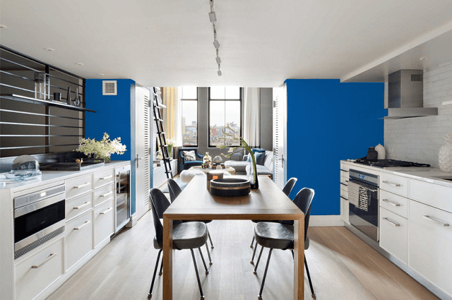 運用琥珀藍與珊瑚橘對比色碰撞出沖擊力的色彩力量,一般的居宅大多會以低彩度的色調創造出寧靜感,而橘色的存在則可以反轉這樣的調性,創造視覺亮點。