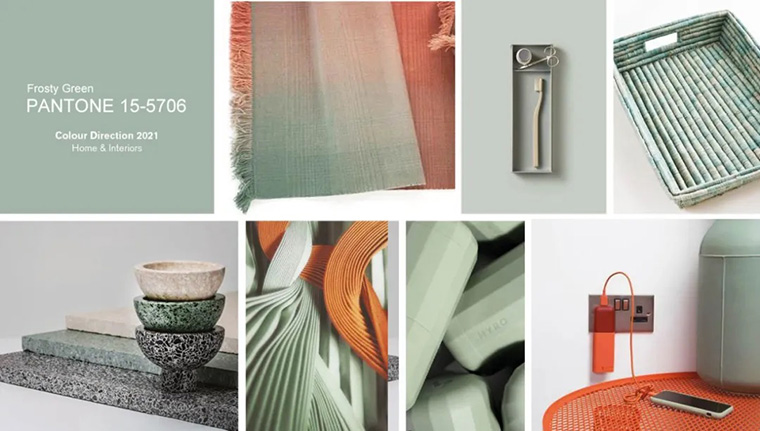 人們?cè)絹?lái)越關(guān)注產(chǎn)品材料的可持續(xù)性,素食主義和植物性材料的崛起,柔和的中性灰綠色喚起了人們對(duì)健康家庭和有意識(shí)的消費(fèi)主義的渴望,搭配濃郁的焦糖和棕褐色,柔和的陰影營(yíng)造出復(fù)古氣息。