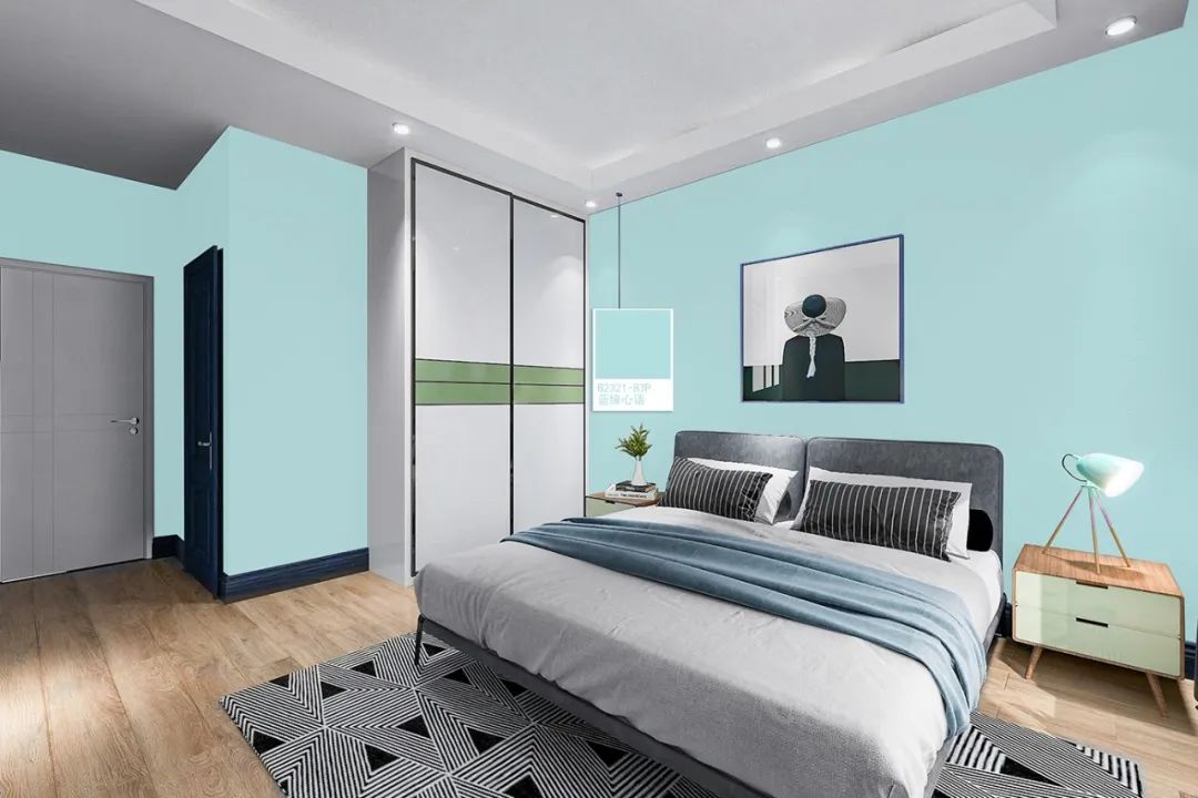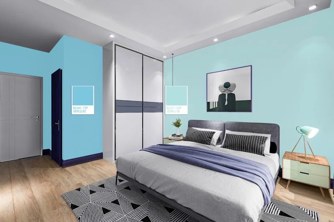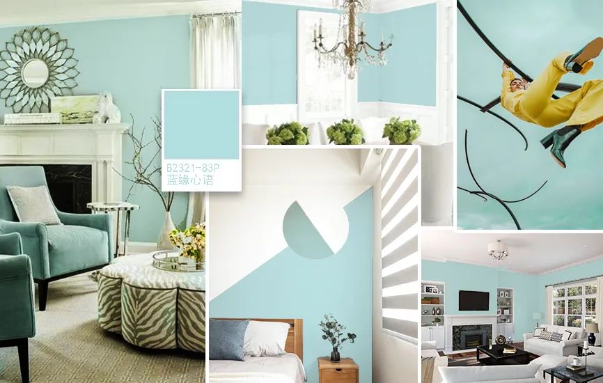 相近色也叫類似色,是運(yùn)用標(biāo)準(zhǔn)色環(huán)上任何部分的45°-60°內(nèi)的色。EX:黃-黃綠-綠;紅-紅橙-橙..等,均為相近色。藍(lán)綠色系不論用在何處,皆能適度提升溫柔與優(yōu)雅,大寶設(shè)彩家刻意挑選純度調(diào)節(jié)到中等程度的B5640-73P揚(yáng)帆遠(yuǎn)航,是一淡化過后的藍(lán)色,飽和度低、明度高,搭配起來能帶給人寧靜平和的感受。當(dāng)然選色處理得當(dāng),色感也更加豐富,相似色組合搭配能表達(dá)在維持原有風(fēng)格的同時,讓空間視覺更有層次感。