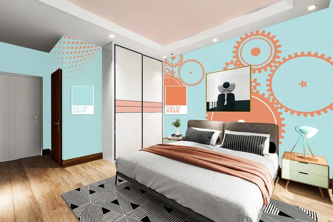 對比色彩搭配法,由于視覺感受較強(qiáng)烈,呈現(xiàn)出不同于單色墻面的大自然氛圍,視覺反差帶出獨(dú)特新意,整合成有趣活潑的視覺重點(diǎn),但太密集使用對比色搭配,會使人眼花撩亂,盡量選定一組對比色即可,除了兩大對比色之外,細(xì)節(jié)建議搭配黑白灰的單品作為平衡。