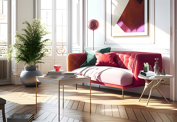 當(dāng)希望客廳的墻面是空間中的焦點(diǎn)時,以R6520-74P紅薇染露,淺紅色為主體,家具搭配深色系,突出背景墻的核心,淺色能使空間顯得更寬闊,不僅感受到春天的氣息,還為居家生活帶來放松暖心的作用。