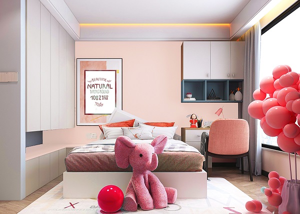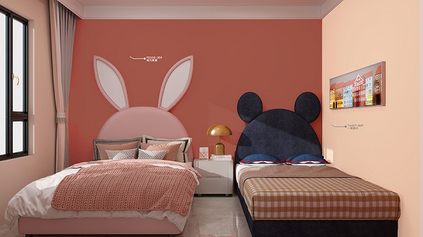 選擇同為暖色調的橘色或紅色,與藕粉色相互呼應,在自然光照射下,這組合顯得清新明亮,帶有一絲俏皮與浪漫;而當夕陽余暉灑入房間墻面的色彩又流露出沉穩與寧靜的氛圍。